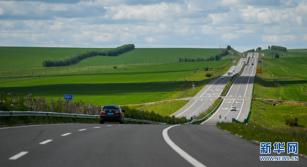 內(nèi)蒙古呼倫貝爾332國道旁景色迷人(6月10日攝)。