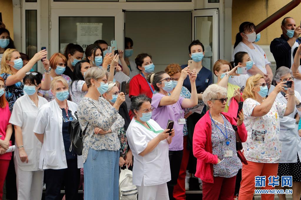 當(dāng)日,羅馬尼亞首都布加勒斯特一個(gè)樂(lè)隊(duì)在該國(guó)一家傳染病醫(yī)院——馬太·巴爾什醫(yī)院演出,向抗擊新冠疫情的醫(yī)務(wù)工作者致謝。