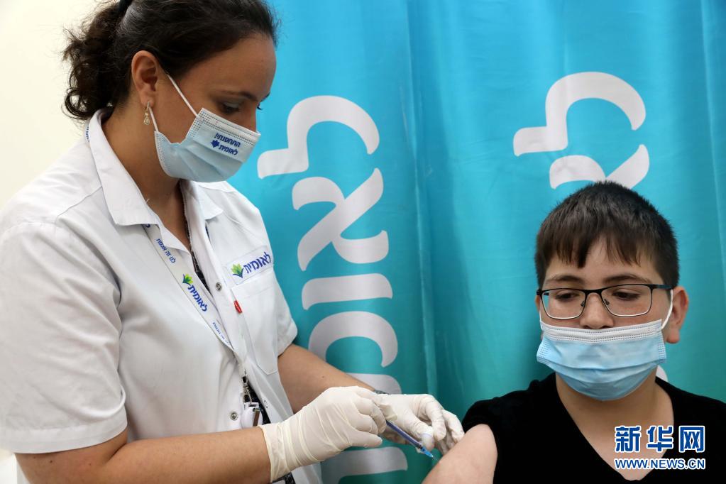 6月22日,在以色列中部城市莫迪因的一處醫(yī)療保健服務(wù)站內(nèi),一名未成年人接種新冠疫苗。