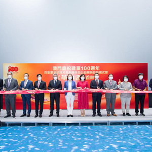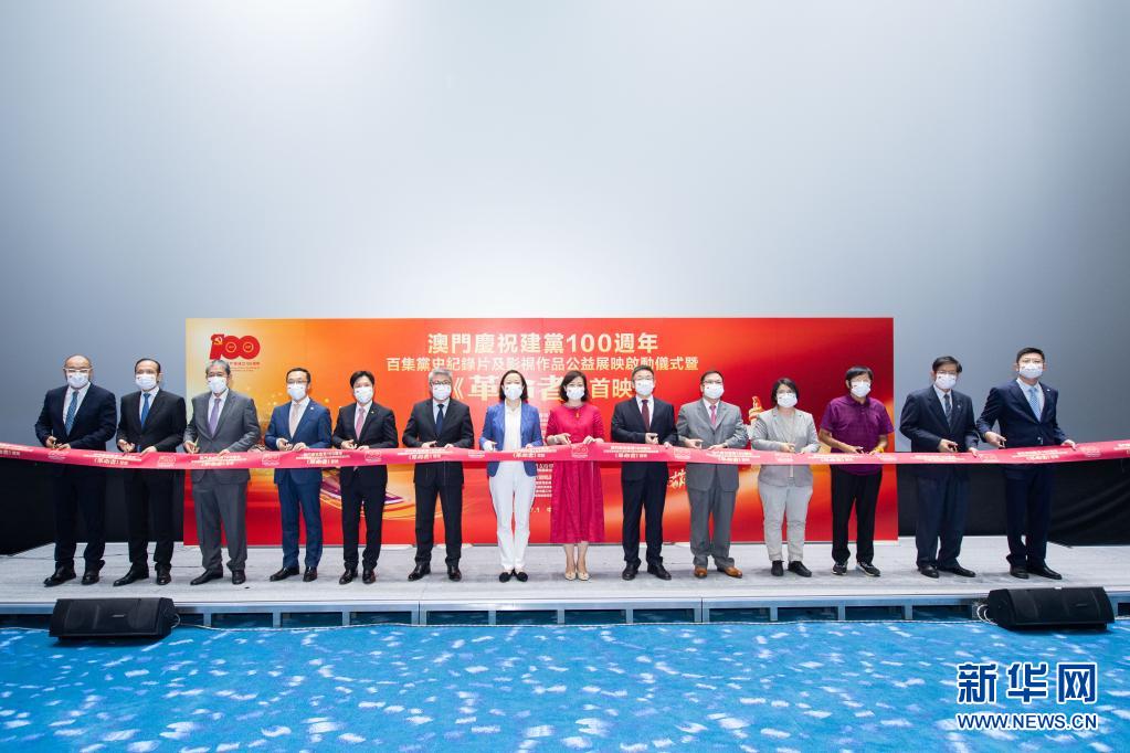 7月1日,嘉賓在“澳門慶祝建黨100周年百集黨史紀錄片及影視作品公益展映啟動儀式暨《革命者》首映”剪彩儀式上。