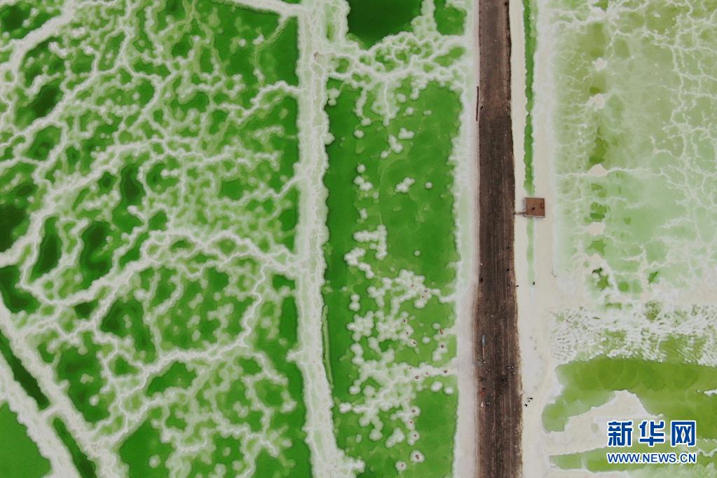 這是7月8日拍攝的察爾汗鹽湖一角(無(wú)人機(jī)照片)。