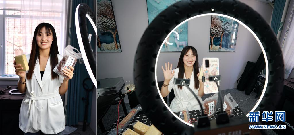 拼版照片:左圖為何雪艷在山西省平順縣龍鎮(zhèn)村電商服務(wù)中心直播間里;右圖為何雪艷通過網(wǎng)絡(luò)直播介紹農(nóng)產(chǎn)品(7月8日攝)。今年25歲的何雪艷是龍鎮(zhèn)村電商服務(wù)中心的網(wǎng)絡(luò)主播,從一個(gè)“電商小白”變身網(wǎng)絡(luò)主播不到一年時(shí)間,何雪艷已成為龍鎮(zhèn)村帶貨能力頗強(qiáng)的“網(wǎng)紅”。從最初直播時(shí)結(jié)結(jié)巴巴,到如今精準(zhǔn)掌握網(wǎng)絡(luò)語(yǔ)言,何雪艷和村里其他主播變得越來越熟練。