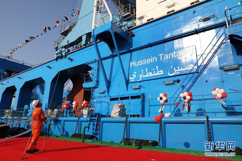 當(dāng)日,埃及蘇伊士運河管理局在伊斯梅利亞舉行儀式,迎接最新購入的“侯賽因·坦塔維”號大型絞吸式挖泥船。