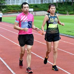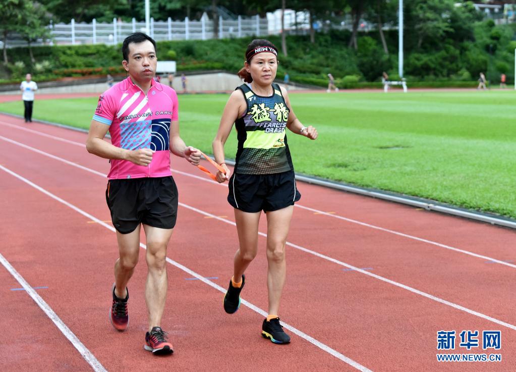 猛龍長(zhǎng)跑隊(duì)視聽(tīng)障跑手蔡浩良(左)與隊(duì)友一起練跑(7月29日攝)。新華社記者 盧炳輝 攝