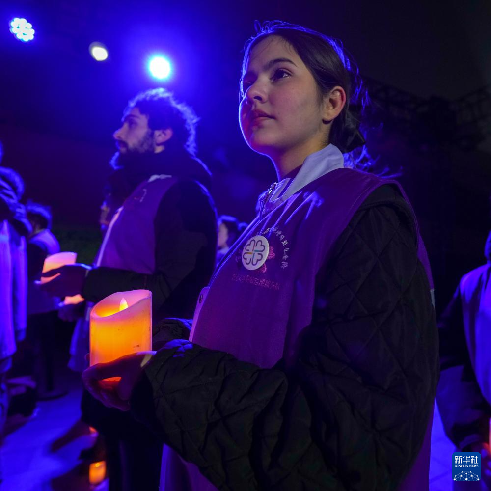 12月13日,参加活动者手捧烛光灯,祈愿和平。