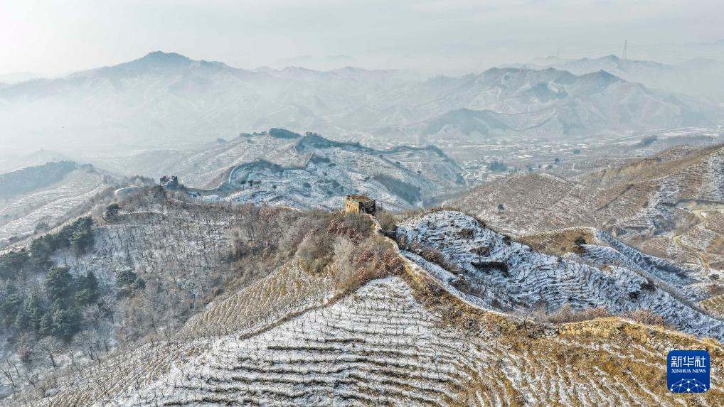12月13日在河北省遵化市拍摄的古长城雪景(无人机照片)。