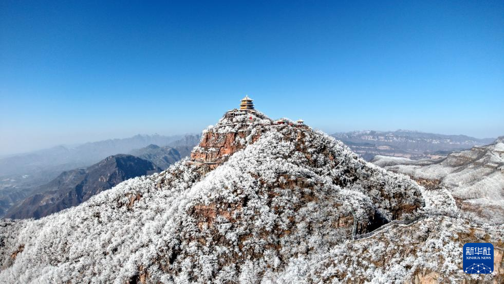 12月13日在河南省济源市拍摄的王屋山雪后景观(无人机照片)。