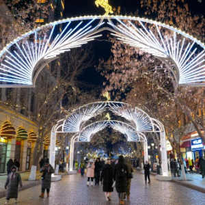 12月以来,哈尔滨进入冬季旅游旺季,中央大街上游人如织。作为哈尔滨市闪耀的城市名片,中央大街在丰富多彩的创意景观与灯饰装饰下显得格外动人。夜幕降临,华灯初上,游人徜徉其中,尽享当地独特文化魅力。