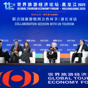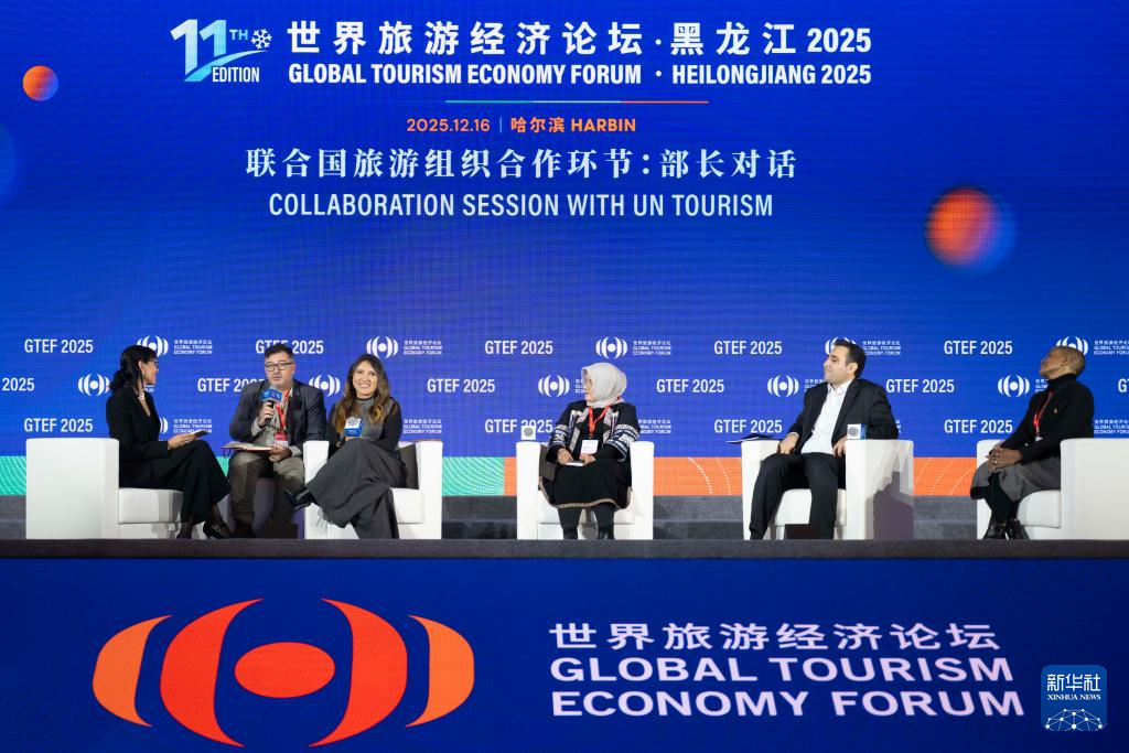 这是12月16日在世界旅游经济论坛·黑龙江2025现场拍摄的联合国世界旅游组织合作环节的部长对话。
