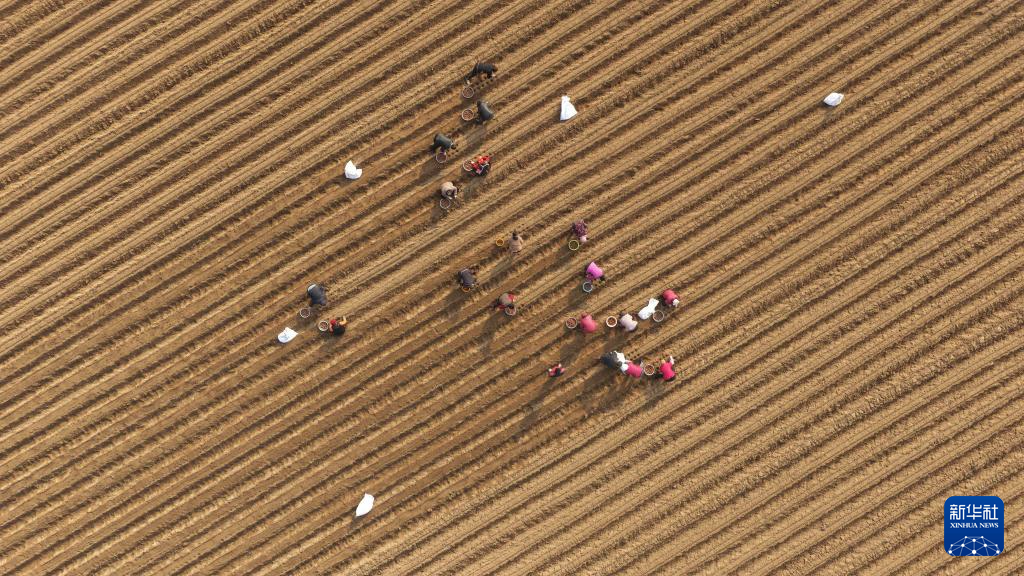 12月16日,在山东省聊城市茌平区贾寨镇,农民在田间种植中药材玄参(无人机照片)。