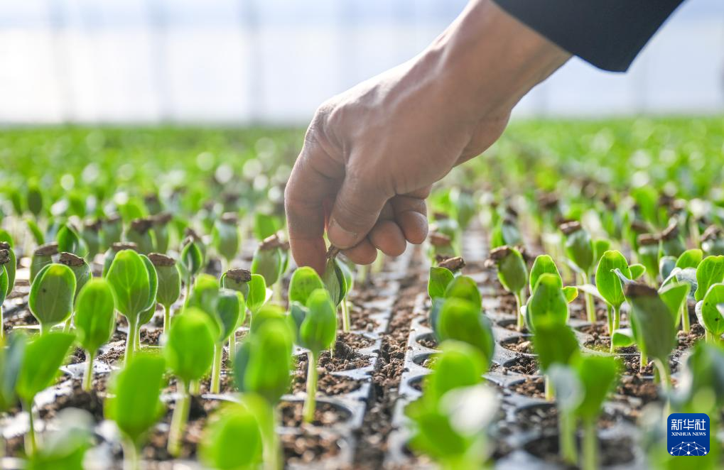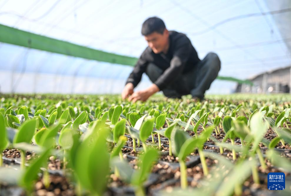 12月16日,村民在河南省商丘市夏邑县会亭镇朱瓦房村一家育苗基地管护瓜苗。