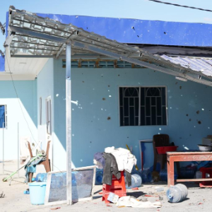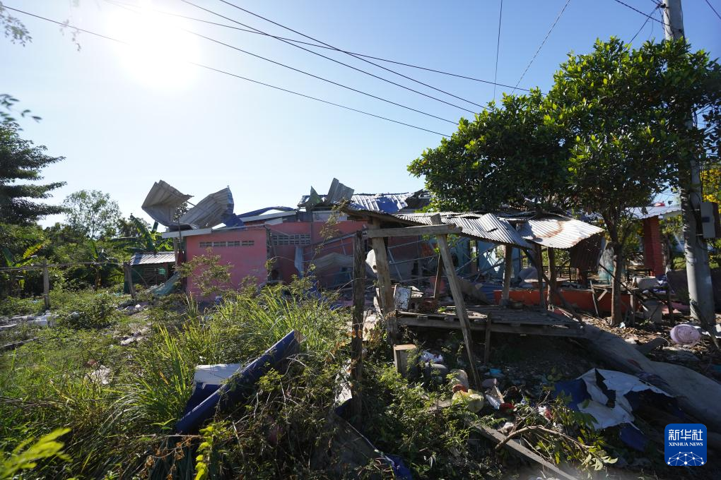 这是12月16日在柬埔寨班迭棉吉省拍摄的一处遭泰军炮击损坏的民房。