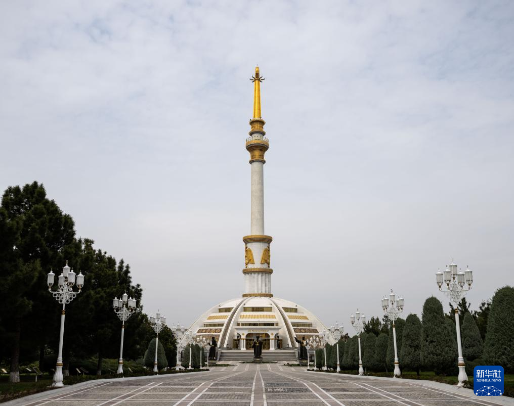 这是3月16日在土库曼斯坦首都阿什哈巴德拍摄的独立柱。