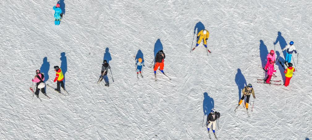 11月27日,一群绿头鸭聚集在降雪后的松花江哈尔滨段未结冰水域觅食、休憩。落日金晖映照下,白雪、寒江和绿头鸭组成了一幅寒江“戏雪”画卷。