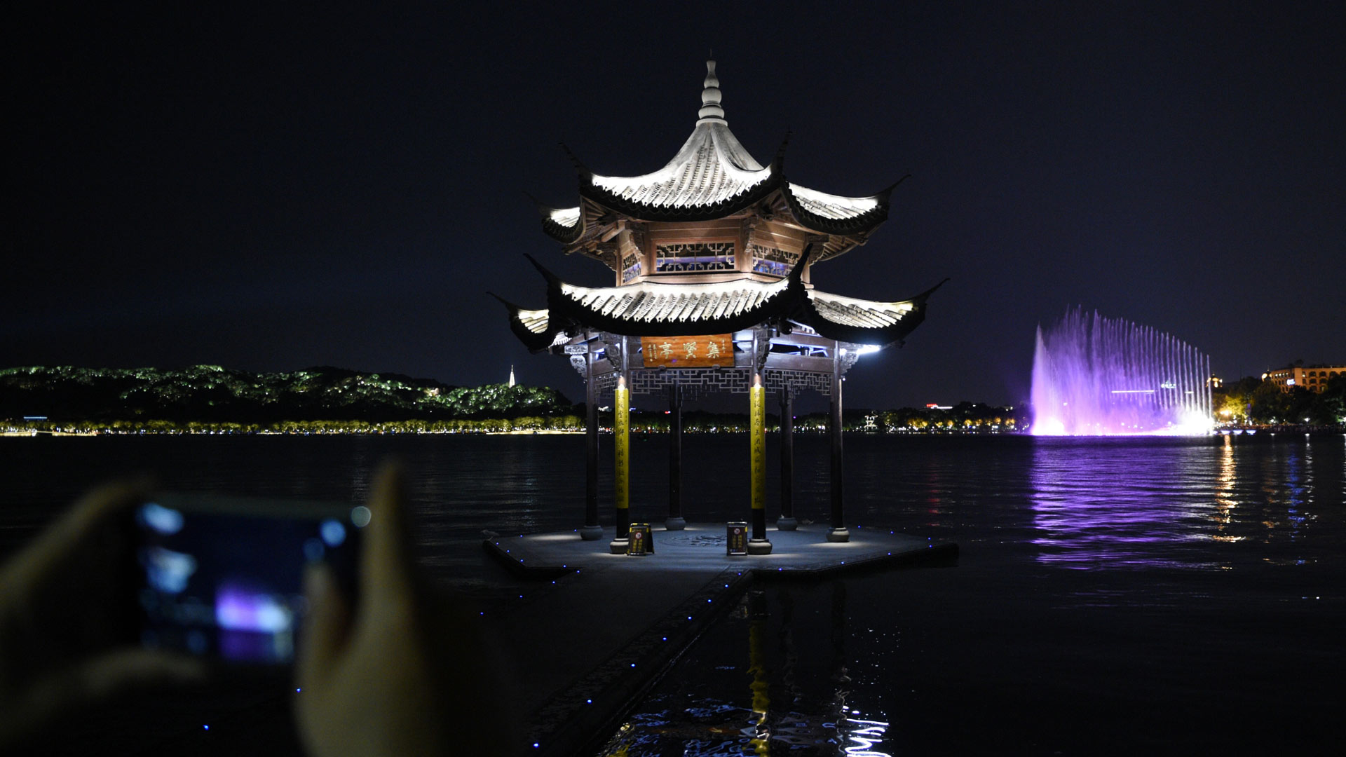 8月26日晚,市民在西子湖畔欣賞夜色。一枕錢塘江,懷擁西湖月,牽著運(yùn)河走,挽著西溪眠……到訪杭州,游人無不感嘆驚奇這座城市的美麗與優(yōu)雅。新華社記者張鋮攝