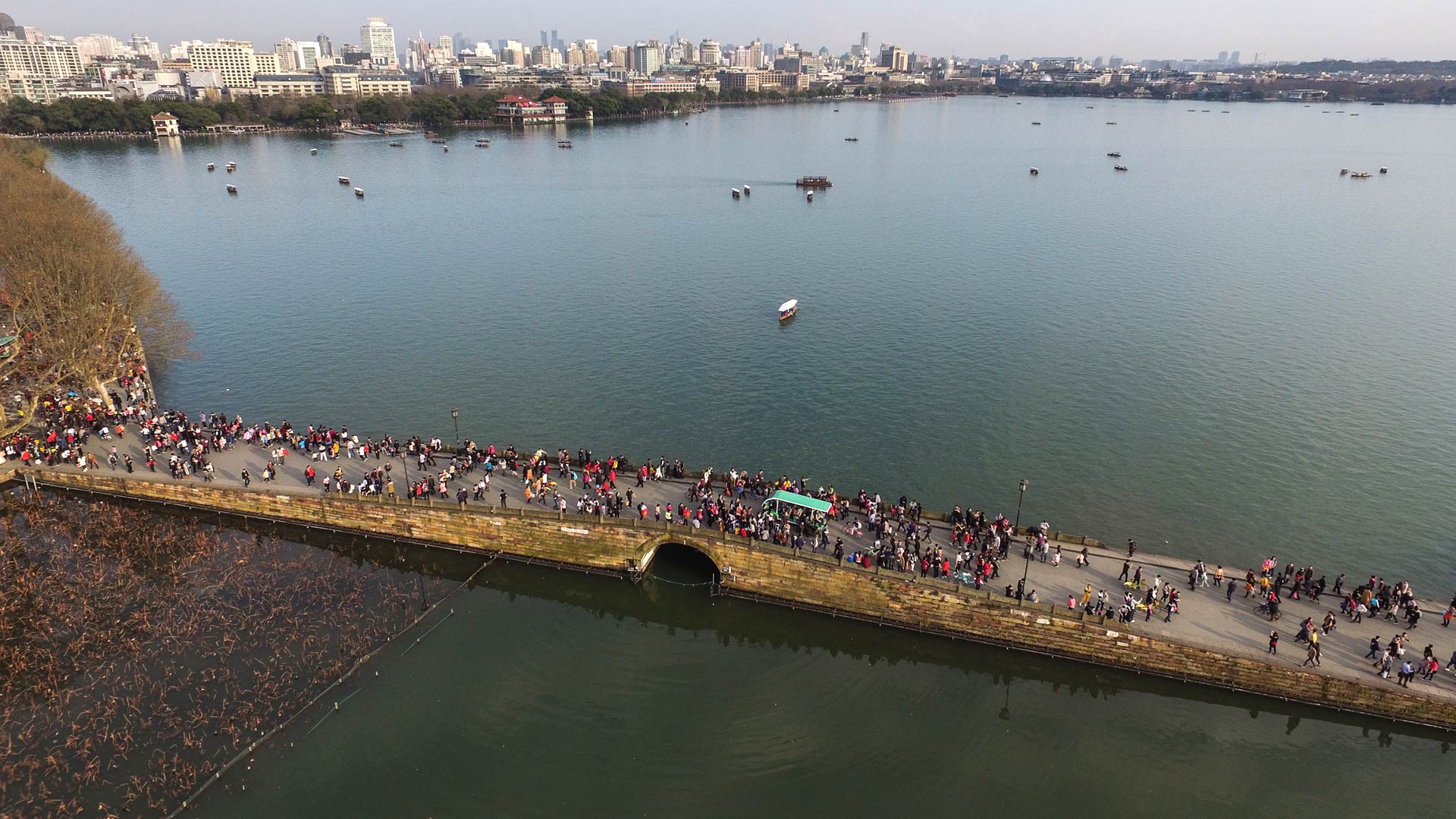 這是4月11日航拍的西湖景區(qū)蘇堤。2001年開始,杭州按“申遺”目標(biāo),對西湖進(jìn)行了全方位的保護(hù)和整治。西湖南線各大公園打通,形成“十里環(huán)湖景觀帶”。龍井八景修復(fù),慧因高麗寺重現(xiàn),南宋官窯博物館擴(kuò)建,八卦田遺址得到保護(hù),還有飛來峰石刻造像、雷峰塔遺址、龍井寺……(新華社記者 黃宗治攝 )