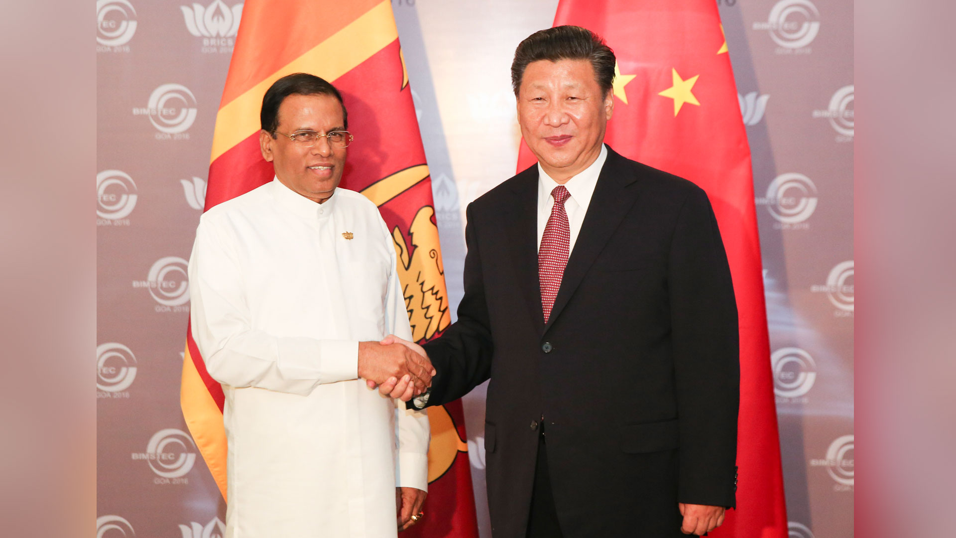 10月16日,國家主席習(xí)近平在印度果阿會見斯里蘭卡總統(tǒng)西里塞納。 新華社記者 王曄 攝