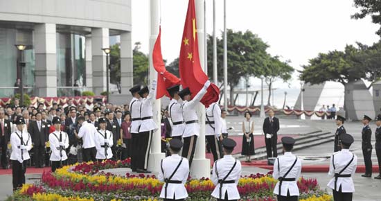 香港舉行升旗儀式 慶?;貧w祖國14周年