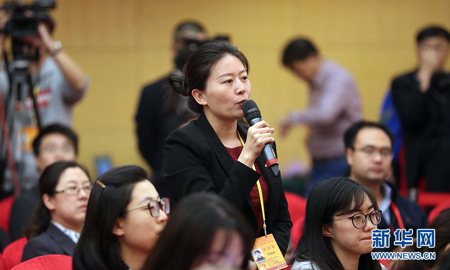 10月21日,十九大新聞中心舉辦集體采訪活動(dòng),主題為“農(nóng)業(yè)科技創(chuàng)新”。圖為農(nóng)民日?qǐng)?bào)記者提問(wèn)。新華網(wǎng) 郝廣鵬攝