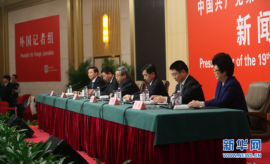 10月22日,十九大新聞中心舉辦記者招待會(huì),邀請教育部黨組書記、部長陳寶生,民政部黨組書記、部長黃樹賢,人力資源社會(huì)保障部黨組書記、部長尹蔚民,住房城鄉(xiāng)建設(shè)部黨組書記、部長王蒙徽,國家衛(wèi)生計(jì)生委黨組書記、主任李斌介紹滿足人民新期待,保障改善民生有關(guān)情況,并回答記者提問。圖為記者招待會(huì)現(xiàn)場。新華網(wǎng) 郝廣鵬攝