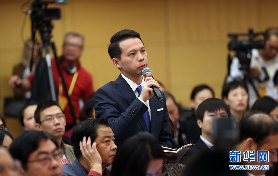 10月22日,十九大新聞中心舉辦記者招待會,邀請教育部黨組書記、部長陳寶生,民政部黨組書記、部長黃樹賢,人力資源社會保障部黨組書記、部長尹蔚民,住房城鄉(xiāng)建設部黨組書記、部長王蒙徽,國家衛(wèi)生計生委黨組書記、主任李斌介紹滿足人民新期待,保障改善民生有關情況,并回答記者提問。圖為中國日報記者提問。新華網 郝廣鵬攝