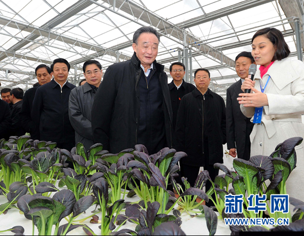 ??? 11月19日至23日,全國人大常委會委員長吳邦國在山西調研。這是11月22日,吳邦國在華通現代科技農業(yè)示范園察看農作物長勢情況。 新華社記者 李濤 攝