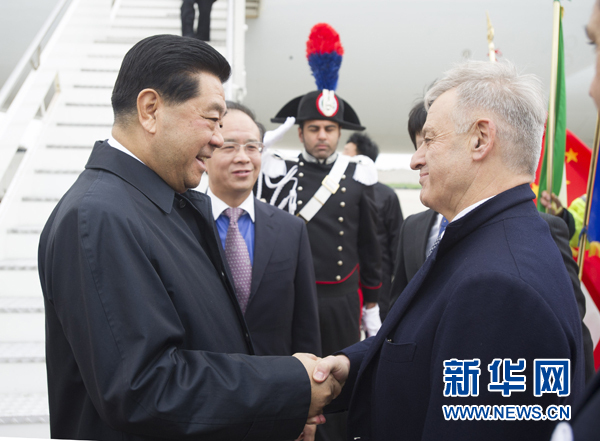 賈慶林抵達羅馬開始對意大利進行正式友好訪問