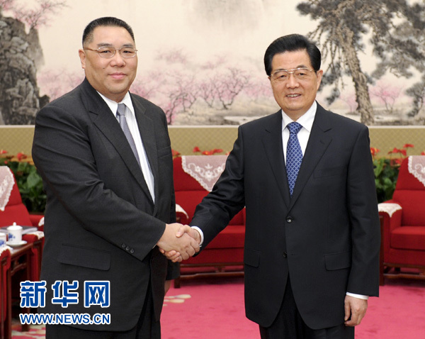 新華網(wǎng)北京12月21日電(記者李寒芳)國家主席胡錦濤21日下午在中南海會見了來京述職的澳門特別行政區(qū)行政長官崔世安,聽取了他對澳門當前形勢和特區(qū)政府工作情況的匯報。