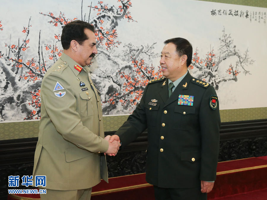 ??? 1月25日,中央軍委副主席范長龍?jiān)诒本┌艘淮髽菚妬碓L的巴基斯坦陸軍參謀長拉希勒。 新華社記者 丁林 攝