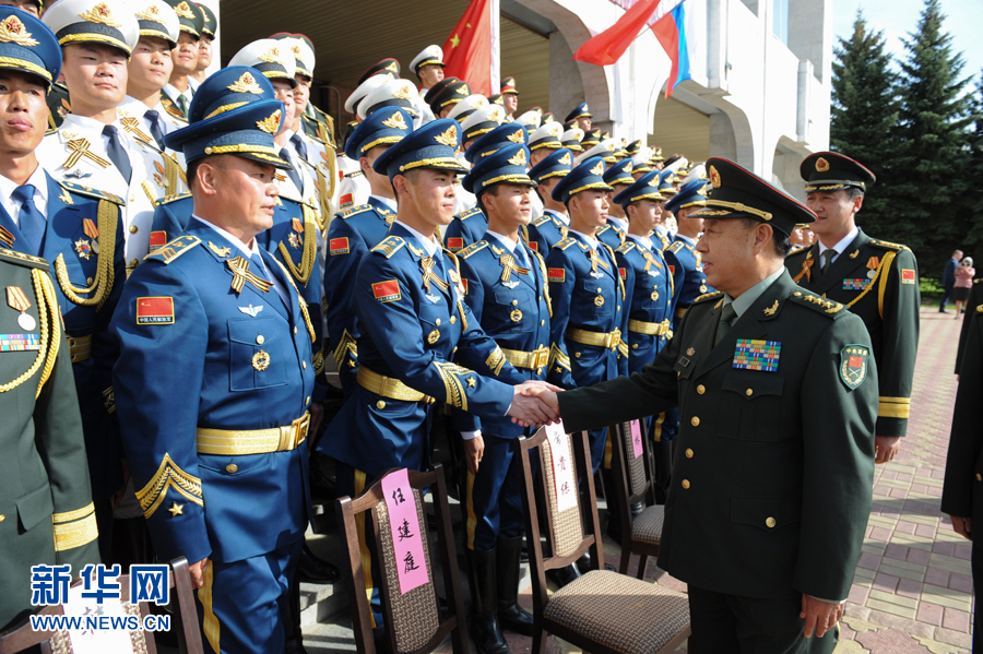 范長(zhǎng)龍看望參加俄羅斯紀(jì)念衛(wèi)國(guó)戰(zhàn)爭(zhēng)勝利70周年慶典的我軍閱兵方隊(duì)官兵