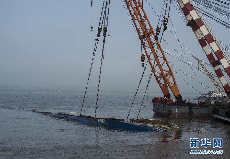 “東方之星”起吊迅速 船體已側(cè)翻過來(lái)
