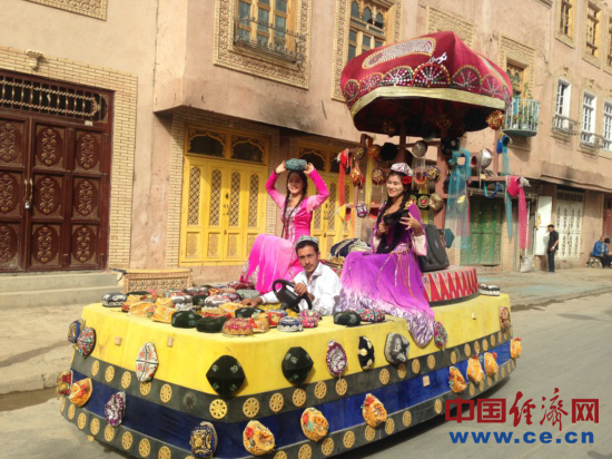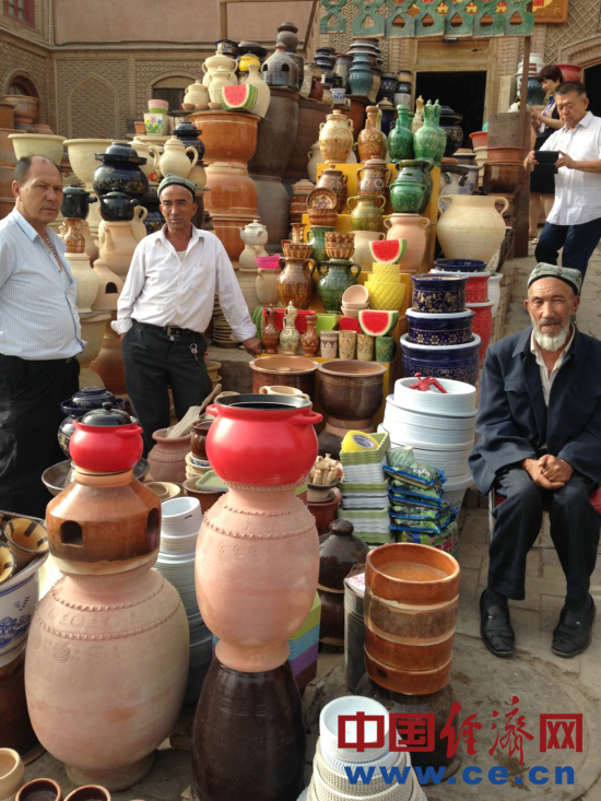現(xiàn)年50歲的買買提?依明是一個(gè)土陶巴扎經(jīng)營者,說起這座老城的變化,他感慨萬千:“你們猜猜這個(gè)房子有多少年了”,記者們表示不知道,“300年了,我們家在這5代人哩”,買買提?依明說,原來的房子很小,巷子也很窄,家里開了個(gè)旅舍,人多的時(shí)候還要打地鋪,生意也不好。后來房屋改造,在自家原址上蓋了新房,全家人高興得不得了,自己花了15萬裝修,整修一新的房屋讓旅舍又紅紅火火的開了起來,大兒子大學(xué)畢業(yè)后已經(jīng)回來幫忙,小兒子還在重慶讀大學(xué)。依明說,當(dāng)初改造的時(shí)候政府讓我們選擇,可以搬出去住樓房,也可以留在這,街坊鄰居們很少有搬走的,現(xiàn)在我周圍還是那些老朋友。說起自己覺得裝修貴不貴,依明說:“政府花了那么多錢給我們蓋房子,我們自己花一點(diǎn)也是應(yīng)該的,感謝政府給我們這么好的生活?!?/p>