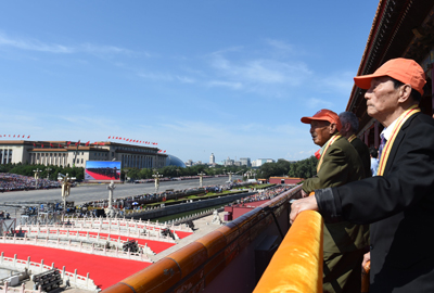 “九三閱兵”這天,李占瑞被安排在天安門(mén)城樓的第一排。雖然經(jīng)過(guò)了前兩天的車(chē)馬勞頓和活動(dòng)安排,李占瑞依舊神采奕奕。“天安門(mén)第一排有我的座位,還寫(xiě)著我的名字。我扶著欄桿,上面下面都看見(jiàn)了,看的很清楚。開(kāi)始是直升機(jī),有200多架,后來(lái)是戰(zhàn)斗機(jī)、轟炸機(jī)、運(yùn)輸機(jī),還有無(wú)人駕駛飛機(jī)。我都看到了。還有導(dǎo)彈,無(wú)數(shù)的導(dǎo)彈。這都是國(guó)家的國(guó)防武器,可以防止敵人侵略呀!”李占瑞爬滿褶皺的臉上閃著光。
