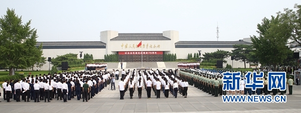 中共中央政治局委員、北京市委書記郭金龍主持紀(jì)念儀式。中央有關(guān)部門、北京市和中央軍委政治工作部負(fù)責(zé)同志,參加過(guò)抗日戰(zhàn)爭(zhēng)的老戰(zhàn)士代表、抗戰(zhàn)將領(lǐng)親屬代表,以及“時(shí)代楷?!贝?、機(jī)關(guān)干部和群眾代表、部隊(duì)代表、學(xué)生代表約500人出席儀式,并參觀了在中國(guó)人民抗日戰(zhàn)爭(zhēng)紀(jì)念館展出的“民族先鋒 中流砥柱——中國(guó)共產(chǎn)黨抗戰(zhàn)英烈事跡展”。