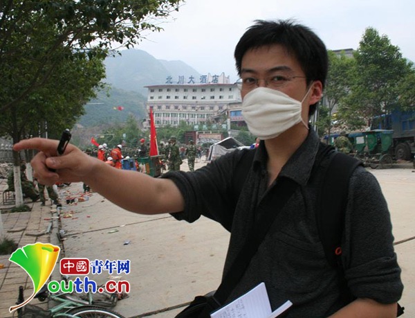 2008年5月13日,他冒著生命危險搶進(jìn)北川,成為第一個進(jìn)入北川新縣城的新華社記者;