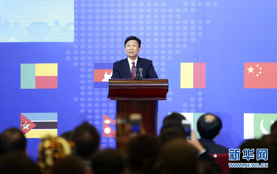 ??? 7月28日,首屆亞非青年聯(lián)歡節(jié)在北京人民大會堂開幕,國家副主席李源潮出席并致辭。新華社記者丁林攝