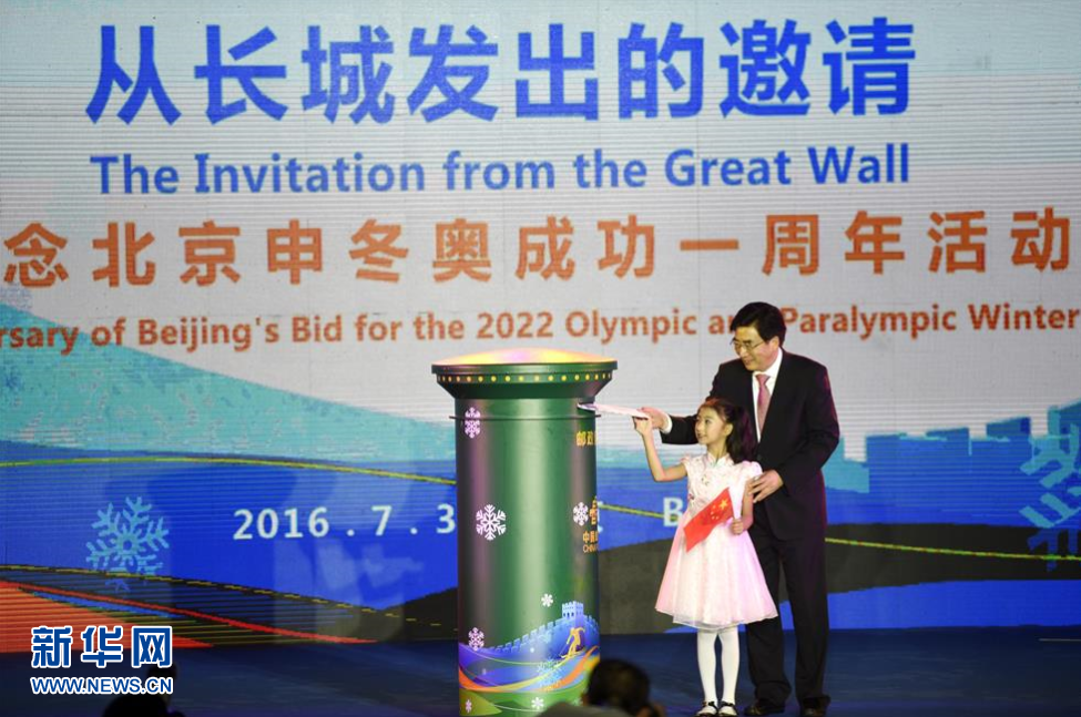 在活動現(xiàn)場,中共中央政治局委員、北京市委書記、北京冬奧組委主席郭金龍和一名少年兒童代表向郵筒投入第一封邀請函,象征著北京冬奧組委從長城發(fā)出邀請,面向全球征集北京2022年冬奧會會徽和冬殘奧會會徽設(shè)計方案。