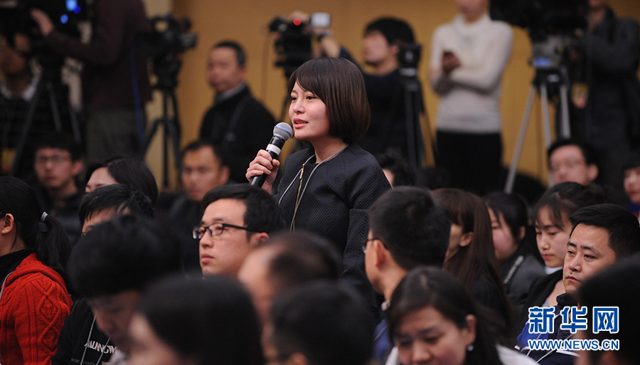 ?????十二屆全國人大四次會議新聞中心于3月12日(星期六)14時30分在梅地亞中心多功能廳舉行記者會,邀請國務院國有資產監(jiān)督管理委員會主任肖亞慶、副主任張喜武、副主任黃丹華和副秘書長、新聞發(fā)言人彭華崗就“國企改革”的相關問題回答中外記者的提問。圖為經濟參考報記者提問。新華網/中國政府網 陳杰 攝