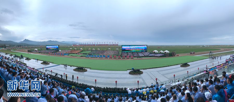 8月8日,內(nèi)蒙古自治區(qū)成立70周年慶祝大會在呼和塔拉內(nèi)蒙古少數(shù)民族群眾文化體育運動中心舉行。圖為大會現(xiàn)場。新華網(wǎng)記者 陳杰 攝