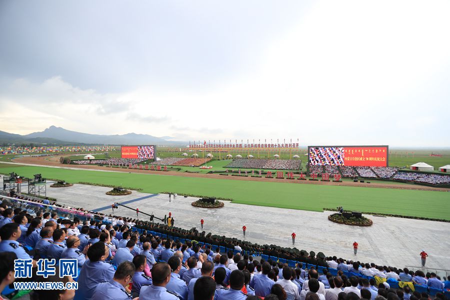 8月8日,內(nèi)蒙古自治區(qū)成立70周年慶祝大會在呼和塔拉內(nèi)蒙古少數(shù)民族群眾文化體育運(yùn)動中心舉行。圖為大會現(xiàn)場。新華網(wǎng)記者 陳杰 攝
