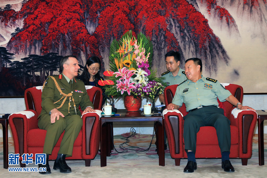 8月14日,中央軍委副主席范長(zhǎng)龍?jiān)诒本?huì)見新西蘭國防軍司令蒂莫西·基廷。 新華社記者 劉芳 攝