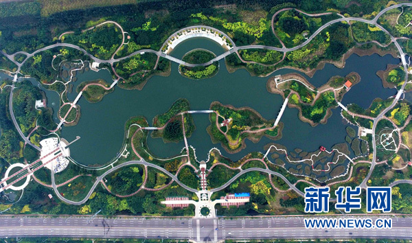 京津冀俯瞰天津濱海新區(qū)臨港經(jīng)濟區(qū)的臨港生態(tài)濕地公園(2016年10月21日攝)。 新華社記者 岳月偉 攝