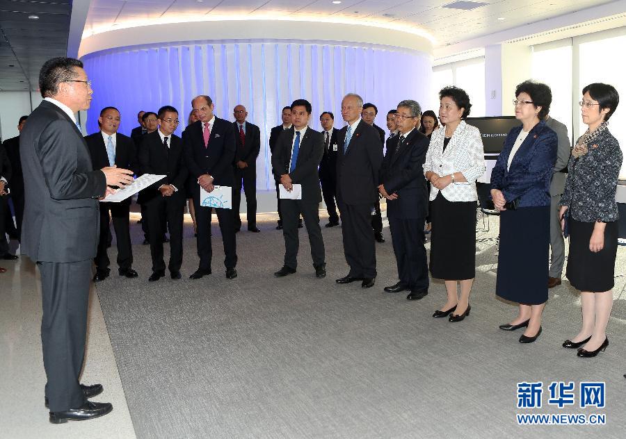 9月25日,中國(guó)國(guó)務(wù)院副總理劉延?xùn)|(前右三)在美國(guó)紐約參觀IBM沃森中心。新華社記者秦朗攝