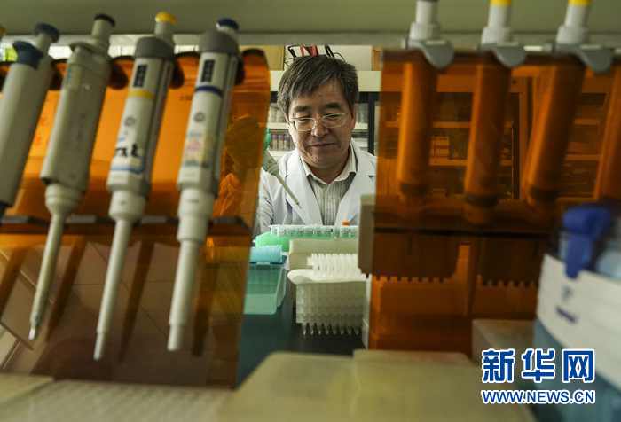 9月20日,何中虎在國家小麥改良中心實驗室做小麥分子標(biāo)記檢測。新華社記者 殷剛 攝