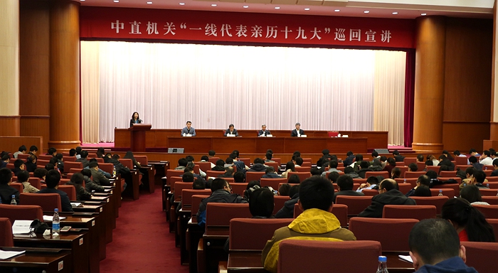 11月14日,中直機關“一線代表親歷十九大”巡回宣講首場報告會在北京全國政協(xié)機關會議樓舉行。新華網(wǎng) 聶晨靜 攝