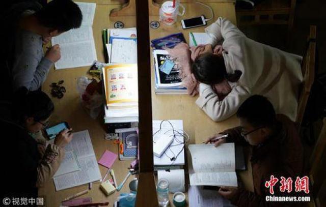 ↑近百名大學(xué)生在自習(xí)室內(nèi)備考。圖片來(lái)源:視覺(jué)中國(guó)