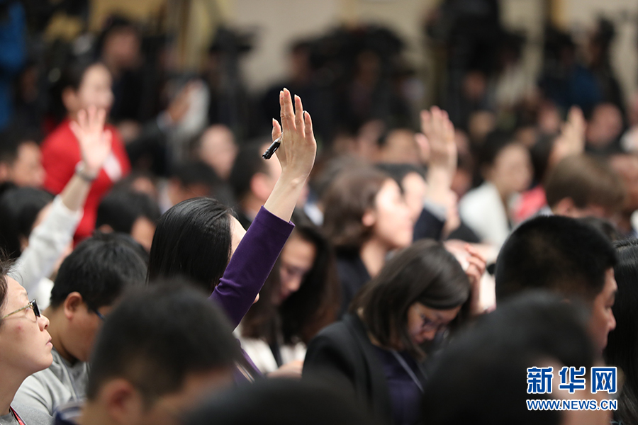 十二屆全國人大五次會議新聞中心于3月8日(星期三)10時(shí)在梅地亞中心多功能廳舉行記者會,邀請外交部部長王毅就“中國的外交政策和對外關(guān)系”的相關(guān)問題回答中外記者的提問。圖為現(xiàn)場記者踴躍提問。新華網(wǎng)/中國政府網(wǎng) 翟子赫 攝?
