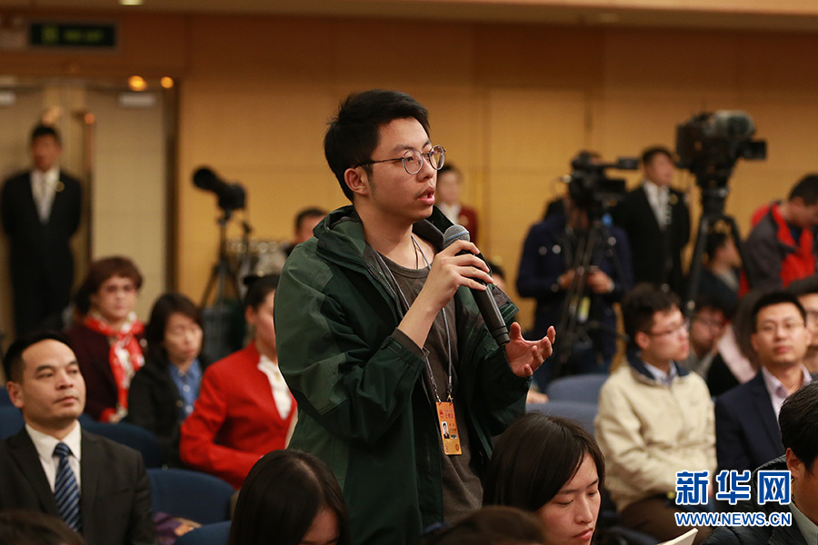 3月12日,十二屆全國(guó)人大五次會(huì)議新聞中心舉行記者會(huì),邀請(qǐng)教育部部長(zhǎng)陳寶生就“教育改革發(fā)展”的相關(guān)問(wèn)題回答中外記者的提問(wèn)。圖為北京青年報(bào)記者提問(wèn)。新華網(wǎng)/中國(guó)政府網(wǎng) 傅義洲 攝