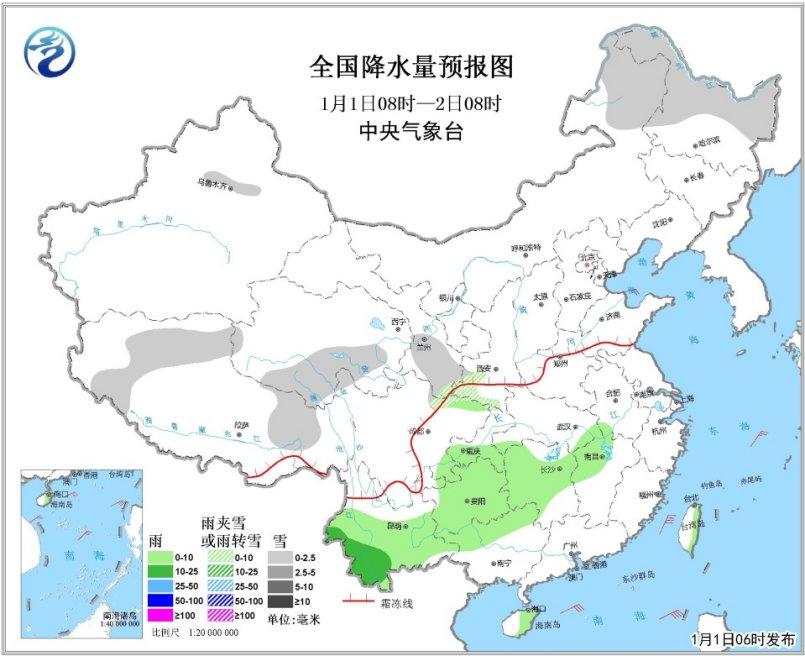 1日08時至2日08時,全國范圍降水較弱。內蒙古東北部、黑龍江北部和東部、西藏西部和東部、青海南部、甘肅東南部等地的部分地區(qū)有陣雪或小雪,局地有中雪;西南地區(qū)南部和東部、江南西部等地有小雨,云南西南部的部分地區(qū)有中雨;內蒙古東部、遼寧等地有4~6級風。南海東北部和西南部有6~8級、陣風9級東北風。