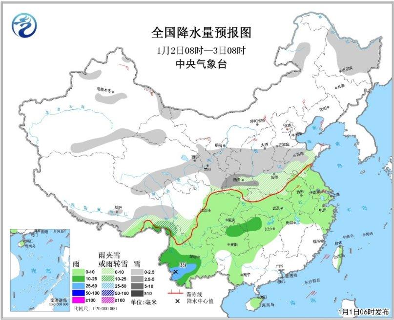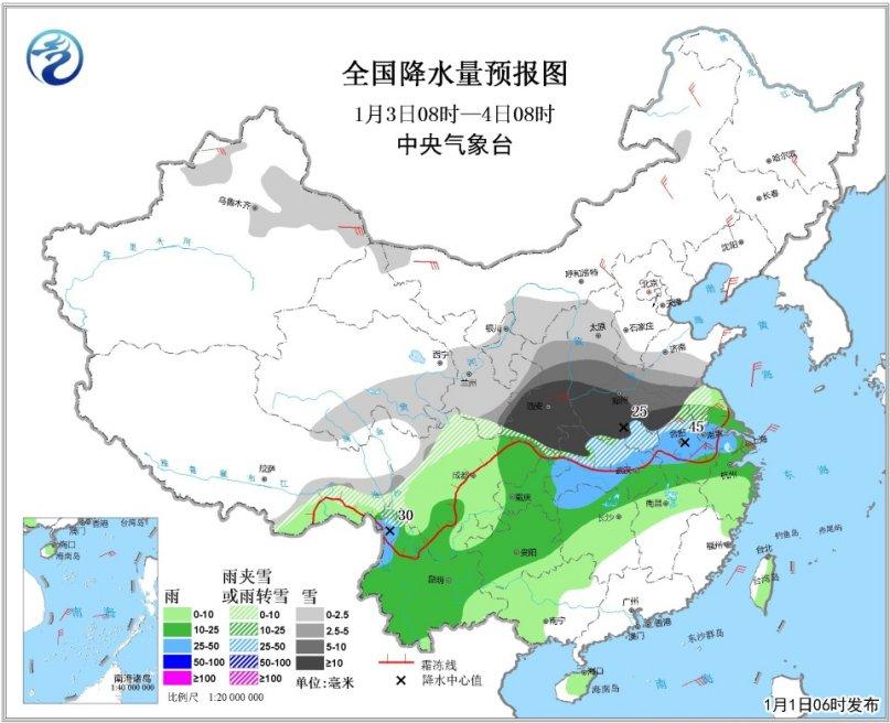 中央氣象臺1日清晨發(fā)布天氣公報,今日全國范圍降水較弱,2日至4日中國中東部將出現大范圍雨雪天氣。